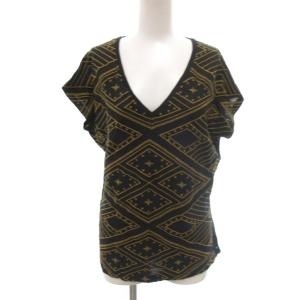 コントワーデコトニエ COMPTOIR DES COTONNIERS カットソー 刺繍 Vネック 半袖 XS ブラック ■YHS10 レディース