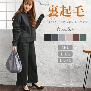 ルームウエア セットアップ 裏起毛 フード付きワイドパンツ 上下セット 秋冬新作 暖かい 可愛い オシャレ 部屋着