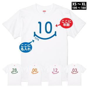 名入れ 年齢 Tシャツ スマイル プレゼント オリジナル 誕生日 記念日 かわいい 家族写真 お揃い リンクコーデ 還暦 古希 お誕生日会 白 おそろい 1500 085