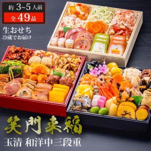 おせち 2026 玉清 和洋中三段重 笑門来福 ( 863886 ) 約3〜5人前 3段重 全49品 生おせち 冷蔵 配送 12月31日お届け 迎春 おすすめ