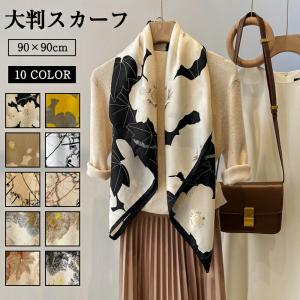 ストール 大判 90×90cm 正方形 レディース シルク調 シルクタッチ ストール 花柄 地図柄 UVカット 冷房対策 日焼け対策 首元 バッグ ベルト おしゃれ 上品