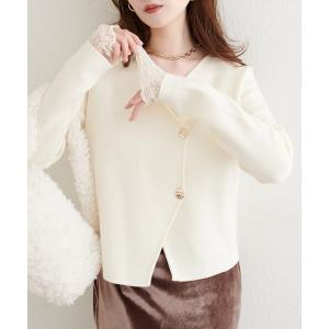 カーディガン プチループゴールド釦ニットカーディガン レディース