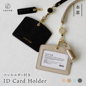 idカードホルダー ケース リール 本革 革 横型 透明窓 ペンホルダー付き ブランド ラシエム