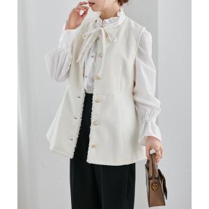 ベスト ジレ ゴールド調ボタンペプラムツイードジレ レディース