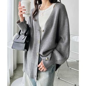 カーディガン 畦編みVネックゴールドボタンカーディガン レディース