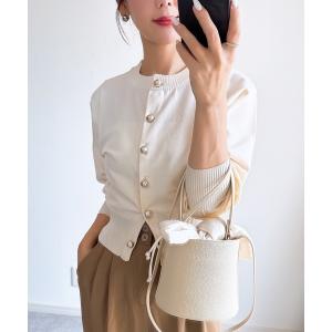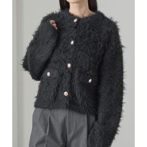 カーディガン 「Cieluna」ゴールドボタン シャギーニット丸首カーディガン レディース