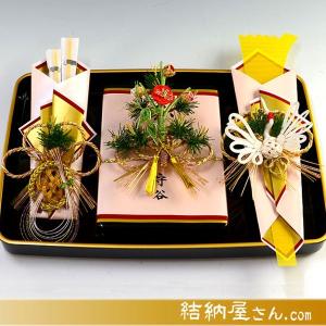 結納 略式結納品 孔雀黒塗台セット(毛せん付)