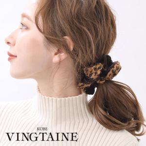 シュシュ ベロア レオパード柄 スエード調 アニマル柄 シンプル フリル オフィス ヘアアクセサリー HS-67