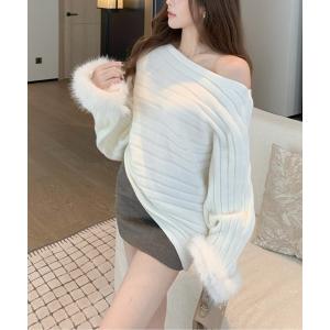 ニット セーター エコファーリストオフショルニットトップス レディース