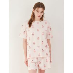 パジャマ ルームウェア カップケーキ柄Tシャツ レディース