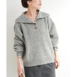 ニット セーター ネップヤーンエルボーパッチニット レディース