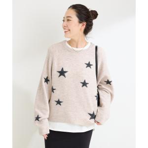 ニット セーター スタージャガードラグランプルオーバー レディース