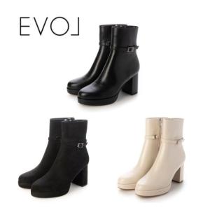 EVOL イーボル スクエアデザインヒールショートブーツ BZ23835 ブーツ レディース 太ヒール スタイルアップ シューズ 靴