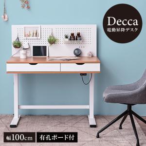 電動昇降デスク 昇降デスク 昇降 高さ調節 幅100cm パソコンデスク 有効ボード ペグボード スタンディングデスク 作業台 木目 シンプル おしゃれ Decca