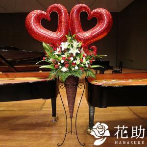 【全国バルーンスタンド花】フラワーコンシェルジュ厳選花屋のお祝いチェーンオブハートスタンド花 1段 20000円 名札無料