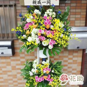 【スタンド花・花輪(葬儀・葬式の供花)】花キューピット 供花 仏花 法事 仏事 お彼岸 お供え用スタンド2段(色もの)