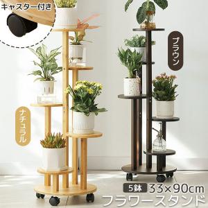 フラワースタンド 竹素材 キャスター付き 5段 2カラー 鉢置き台 園芸ラック ガーデニングラック プランター台 ガーデンラック プランタースタ