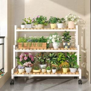 フラワースタンド 花棚 植物棚 盆栽棚 多肉植物棚 キャスター付き 室内 屋外 プランタースタンド おしゃれ 錆びない 木製 園芸ラック ガーデニング 大容量