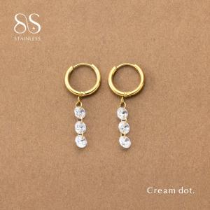 サージカルステンレス ピアス 金属アレルギー つけっぱなし キャッチレス 中折れ ビジュー 3連 フープ 揺れる