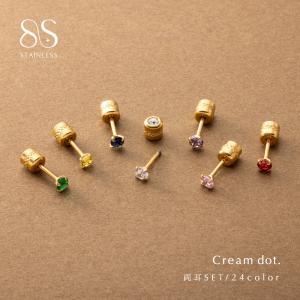 サージカルステンレス ピアス 金属アレルギー対応 つけっぱなし ネジロック式 円柱型 ビジュー 誕生月カラー 両耳用