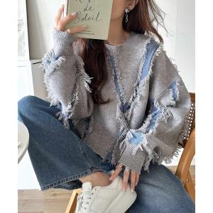 ニット セーター ゆるっとこなれ感男女兼用可♪フリンジ配色オーバーニット(長袖) レディース ニット セーター ゆるっとこなれ感男女兼用可♪フリンジ配色オーバーニット(長袖) レディース4,998円