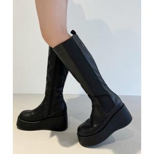 ブーツ 「マイナス3キロ見え」サイドゴアボリュームソールロングブーツ レディース