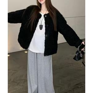 ブルゾン アウター オーバーサイズもこもこノーカラージャケット レディース