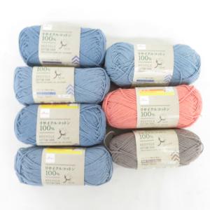 ダイソー リサイクルコットンヤーン 7玉セット スレートグレー ネイビーブルー コーラルピンク1玉約50g 約120m リサイクルコットン100%