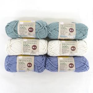 ダイソー リサイクルコットンヤーン 6玉セット スカイブルー ホワイト ターコイズグリーン 1玉約40g 約40m 極太 リサイクルコットン100%