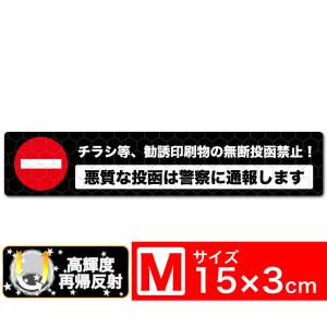 送料無料 チラシ等、勧誘印刷物の無断投函禁止! 悪質な投函は警察に通報します 黒x白 超光 高輝度再帰反射ステッカー 150x30mm Mサイズ EXPROUD B091PTYKTQ