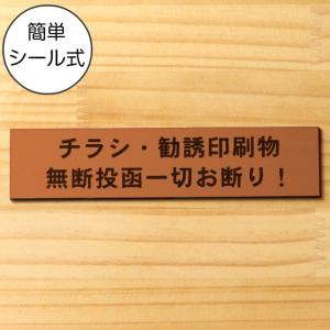 チラシ 勧誘印刷物 無断投函一切お断り サインプレート 銅板風 ブロンズ 注意喚起 迷惑投函 広告 禁止 赤銅色 屋外対応 水濡れOK シール式 メール便送料無料