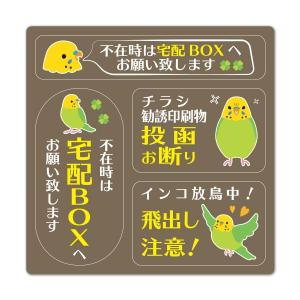 サインマグネットステッカー 3メッセージセット インコ 茶色 不在時宅配BOXへ チラシ印刷物投函お断り インコ飛出し注意! お知らせ ゆうパケット対応210円〜
