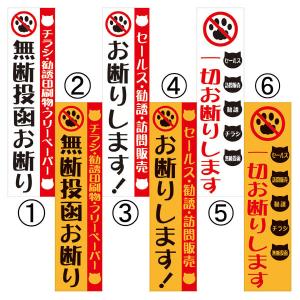 猫ステッカー お断りします 郵便ポスト セールス チラシ フリーペーパー 勧誘 訪問販売 無断投函 200×50 シールタイプ 猫イラスト タテ型