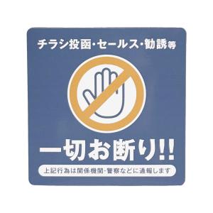正方形 チラシお断り マグネット ステッカー オールドブルー 10×10cm 勧誘 ビラ ちらし DM 不要 防止 張り紙 ポスト 玄関に 広告 禁止 おことわり 定形外発送