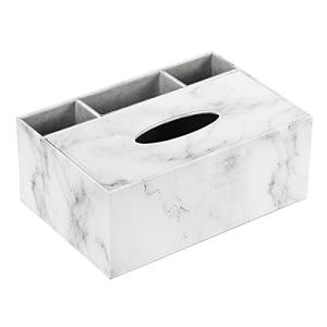 ティッシュケース マーブル調 大理石柄 リモコンラック 小物入れ 分格デザイン 多機能卓上収納ケース マーブルホワイト