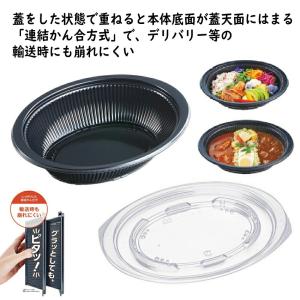 テイクアウト容器 DLV楕円24-18(60)MSD 黒 本体、ふたセット 50枚