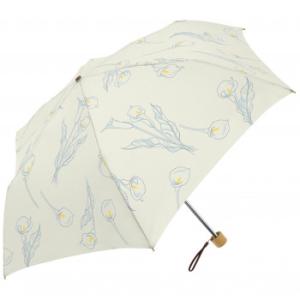 三国 裏黒コーティング晴雨兼用折りたたみ傘 水彩フラワー アイボリー S2517924