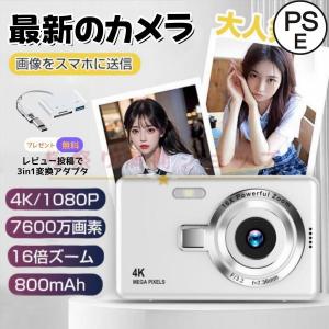 デジカメ デジタルカメラ 4K 7600万画素 16倍ズーム 高画質 オートフォーカス ウェブカメラ機能 手振れ補正 IPS大画面 防塵 軽量 初心者