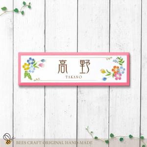 表札 おしゃれな木製表札 かわいいデザイン表札 パステルフルール N 戸建て マンション サロン 長方形 データ入稿可 雨ざらし不可 取り付け簡単 吊り下げにも