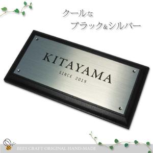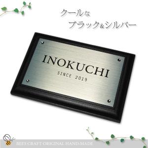 おしゃれなウッド&メタル調表札(木製)スモークシルバー 100×150mm 長方形 取り付け簡単・吊り下げにもできます データ入稿可 水濡厳禁