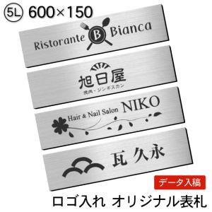 ロゴマークOK 表札 会社 プレート ステンレス調 シルバー 5L 600×150 屋外対応 デザイン表札 オーダー データ入稿で看板製作 銀色 シール式 送料無料