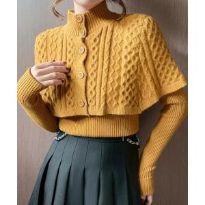 ニット セーター ケーブルケープカーデ+Vネック長袖ニットインナーセット レディース ニット セーター ケーブルケープカーデ+Vネック長袖ニットインナーセット レディース7,260円