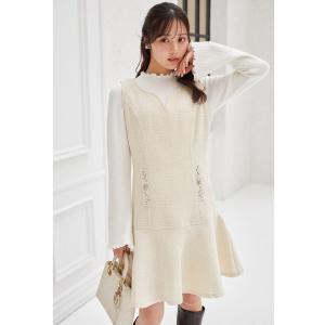 ワンピース サイドリボン付きツイードドッキングミニワンピース ワンピース サイドリボン付きツイードドッキングミニワンピース7,590円
