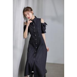 ワンピース ステッチ入りオープンショルダーバックレースアップデニムシャツワンピース ワンピース ステッチ入りオープンショルダーバックレースアップデニムシャツワンピース6,930円