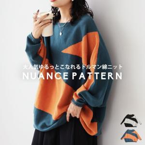 ドルマンニット ニット レディース トップス 長袖 ニュアンス柄・メール便不可