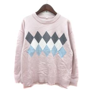 トップバリュ TOPVALU ニット セーター 総柄 長袖 M ピンク /MN ●RY レディース