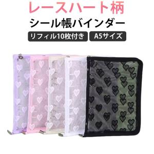 シール帳 クリア トレカ収納 透明 ファスナー レース ハート柄 シールバインダー 6穴 防水 バインダー かわいい カスタマイズ アルバム A5 ケ