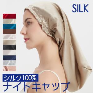 ナイトキャップ シルク ナイトキャップ シルク100% ロングヘア シルクキャップ レディース 睡眠 就寝用 帽子 女性 シルク製 保湿 ヘアケア