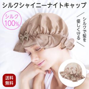 ナイトキャップ ヘアキャップ 就寝用 シルクシャイニーナイトキャップ おしゃれ リボン ヘアケア シルク シルクキャップ ピンクベージュ シルク100%