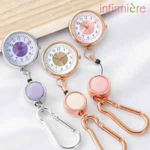 ナースウォッチ 懐中時計 ナースグッズ アンファミエ 引っ張っても外れない!カラビナリール式ナースウォッチ